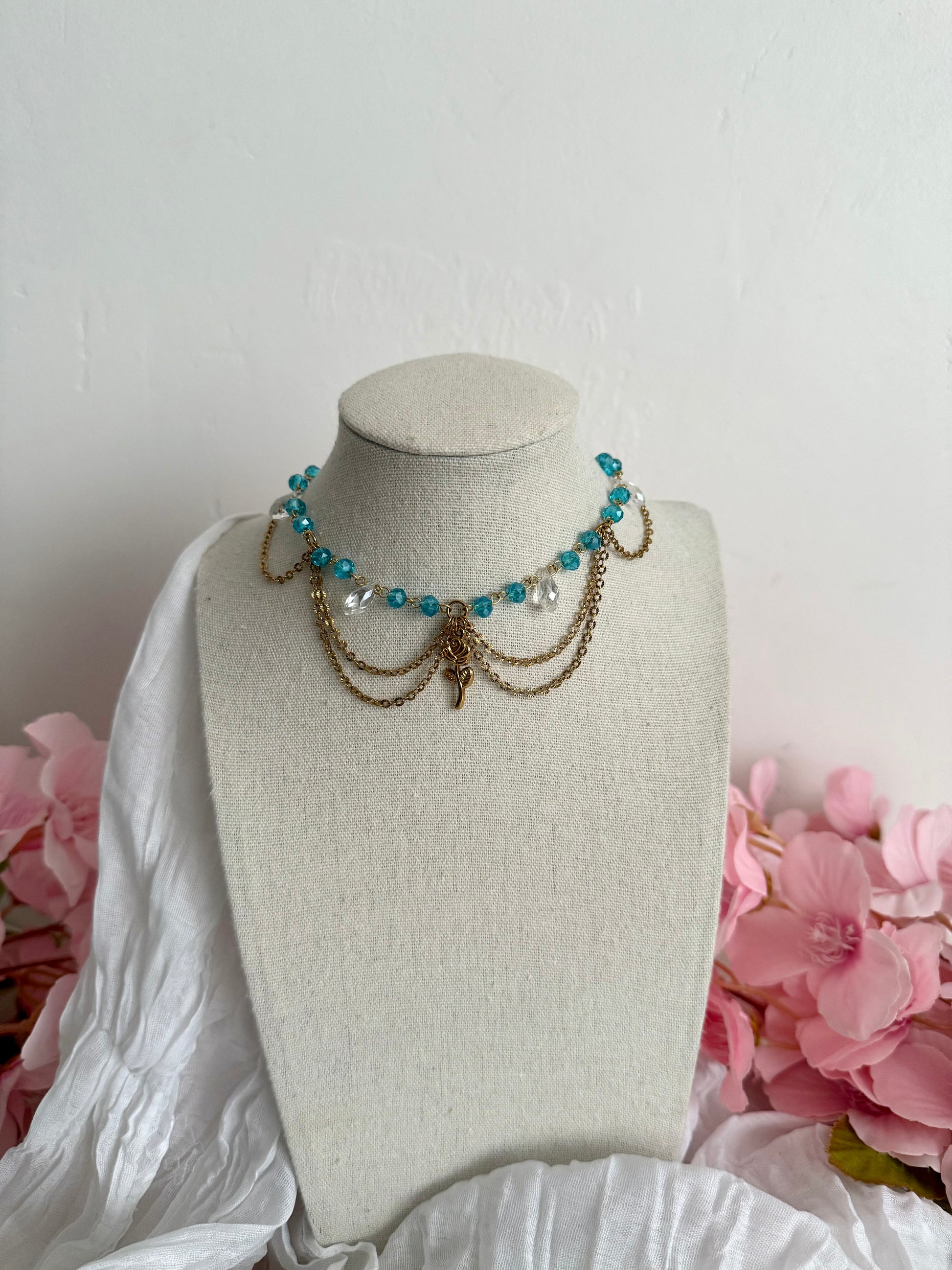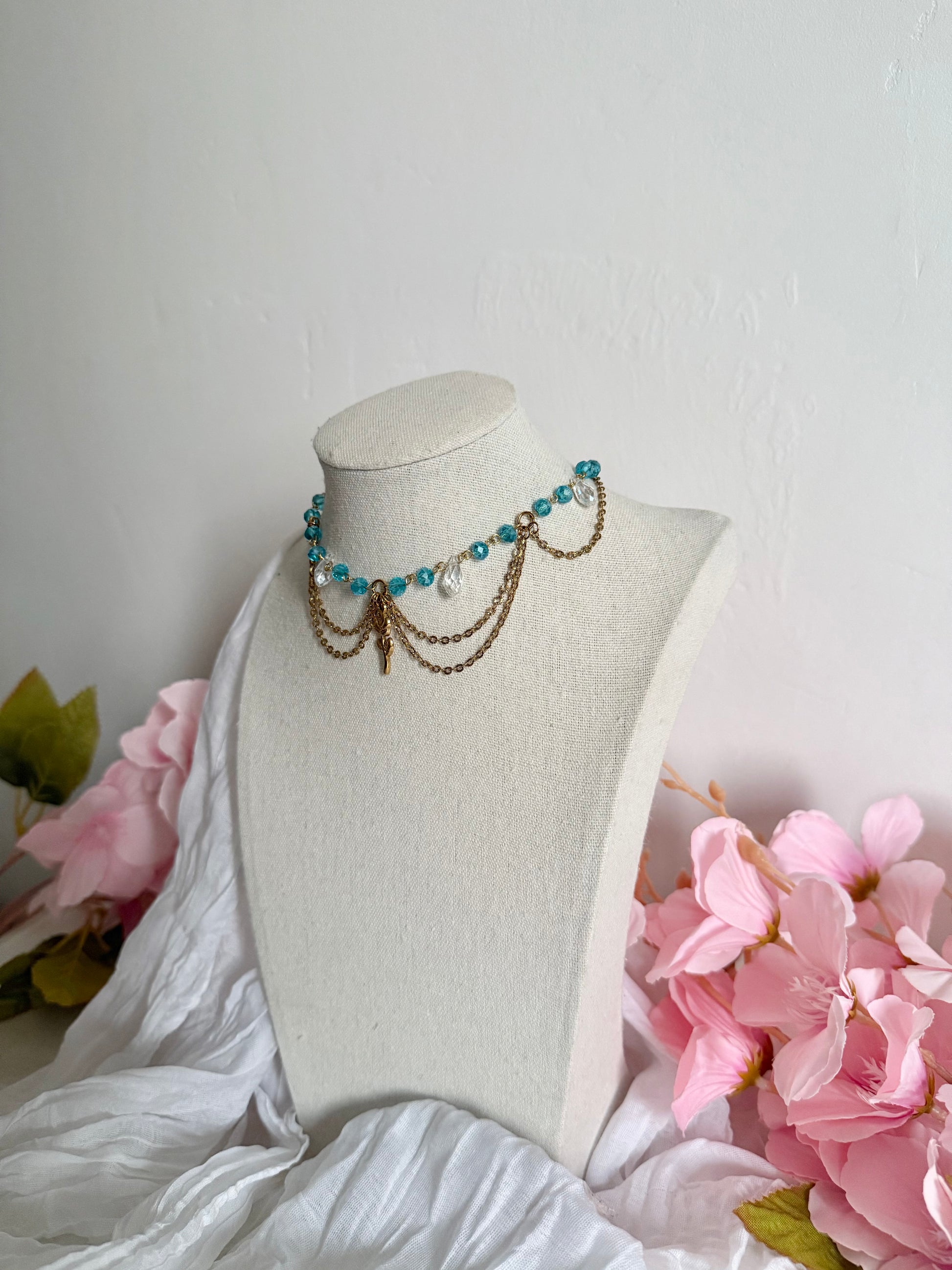 Imaginé dans l’univers du Jardin des Ladies, le collier Crystal a été entièrement façonné à la main, en doré, dans mon atelier en France.