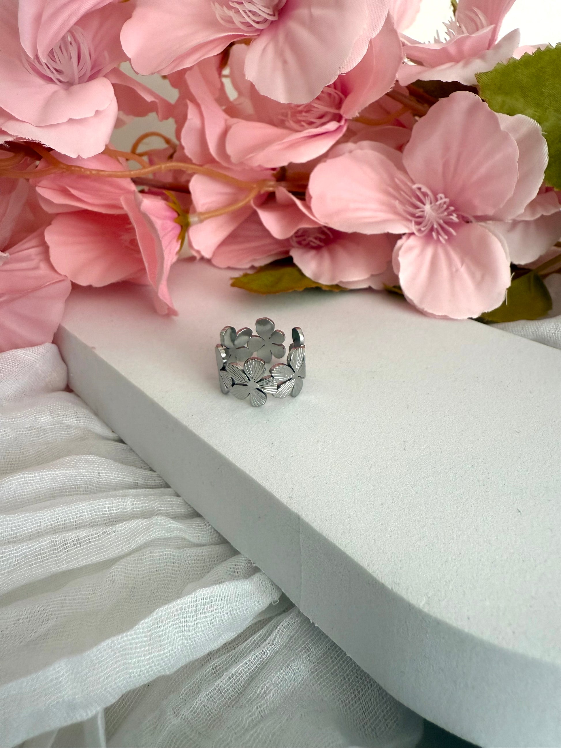 Imaginé dans l’univers du Jardin des Ladies, la bague Fleur est façonnée en acier inoxydable.