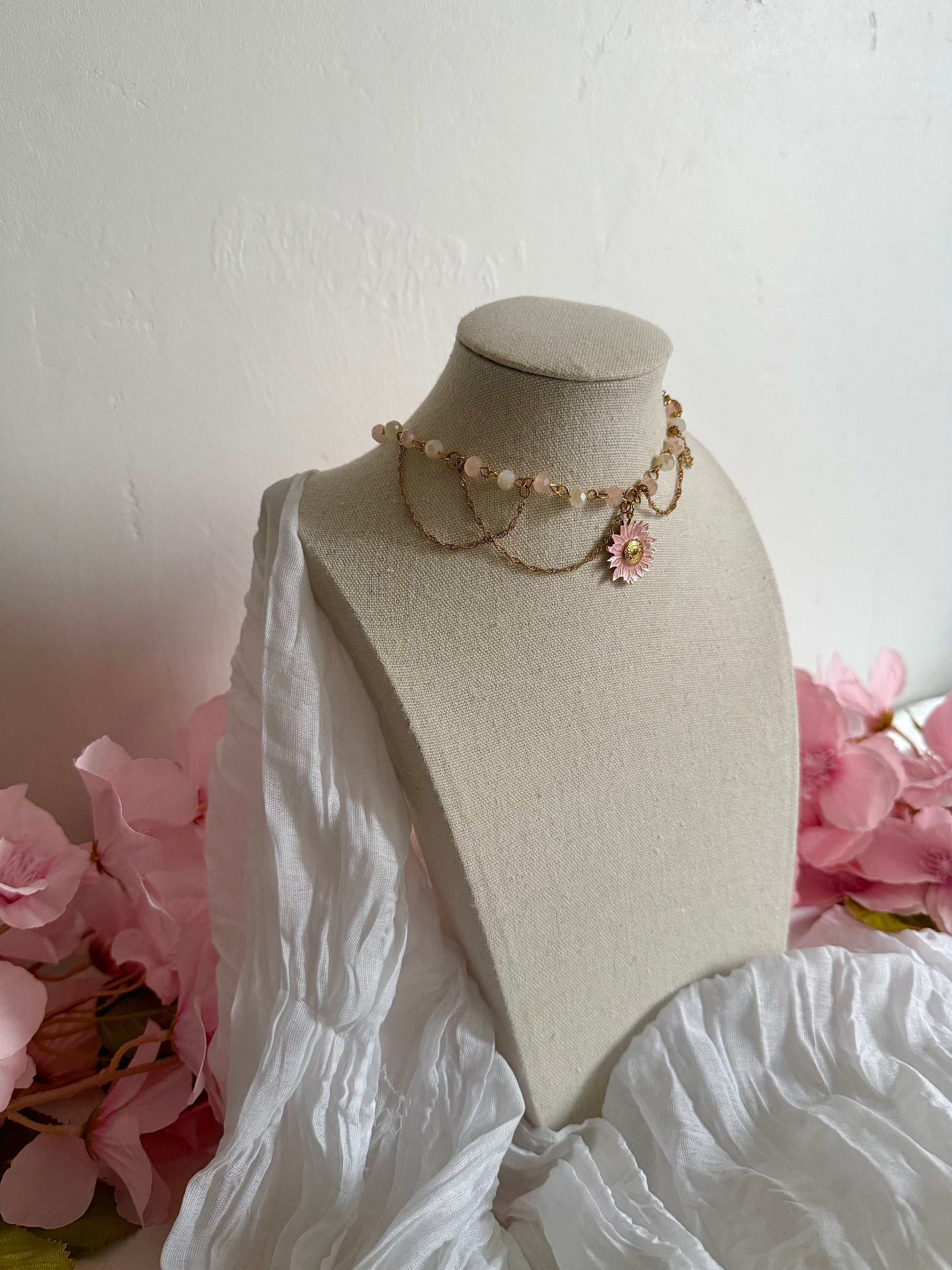 Imaginé dans l’univers du Jardin des Ladies, le collier Fleur Royale a été entièrement fait main dans mon atelier en France.