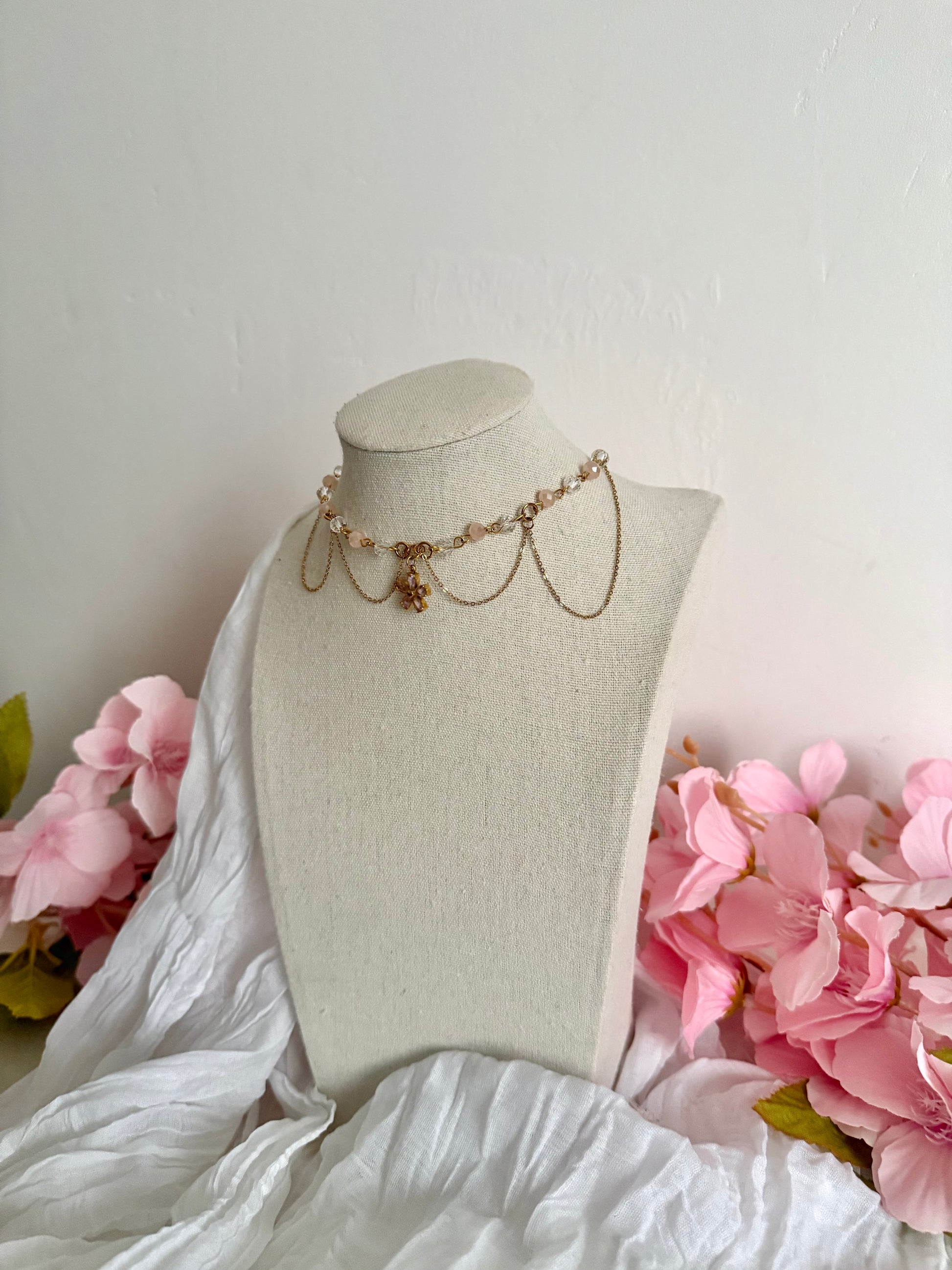 Imaginé dans l’univers du Jardin des Ladies, le collier Pénélope a été entièrement fait main dans mon atelier en France.